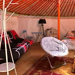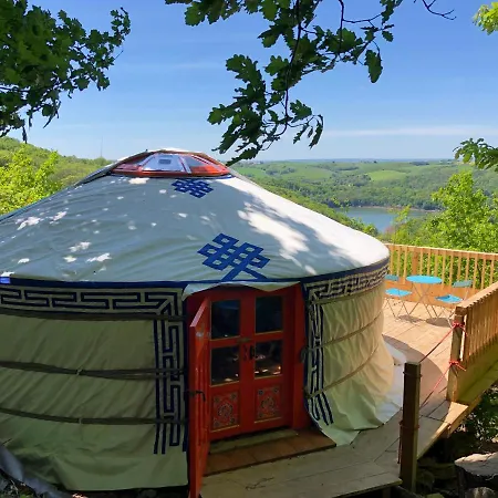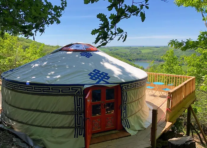 Yourte Mongole ligt op 4 km afstand van Chateau de Grandval en nodigt gasten uit om te ontspannen op een terras.